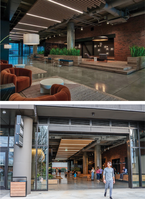 The first of about 3,500 employees started moving into the building in January and the final group moved in Oct. 2. Most donโt come in five days a week because of hybrid work schedules, says company spokesperson Madison McDonald. A seven-level parking garage with 1,100 spaces and loading dockย supports the building, while its 25,000 square feet of retail space will host locally owned restaurants. Two spots opening next year will be run by famed local chefs Joe and Katy Kindred: Albertine, a fine dining restaurant, and Milkbread, an all-day cafรฉ and coffee shop.