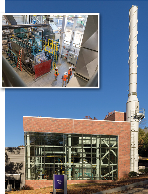 Western Carolina University replaced its steam plant, built in 1924 and initially fueled by coal, with a modern operation that is powered by natural gas. The steam plant heats buildings and provides hot water. The new plant has its own smokestack, but the design keeps the original version as a historical nod. The plantโs original steam whistle, once used to signal the start and end of a workday, is being installed in the new plant.