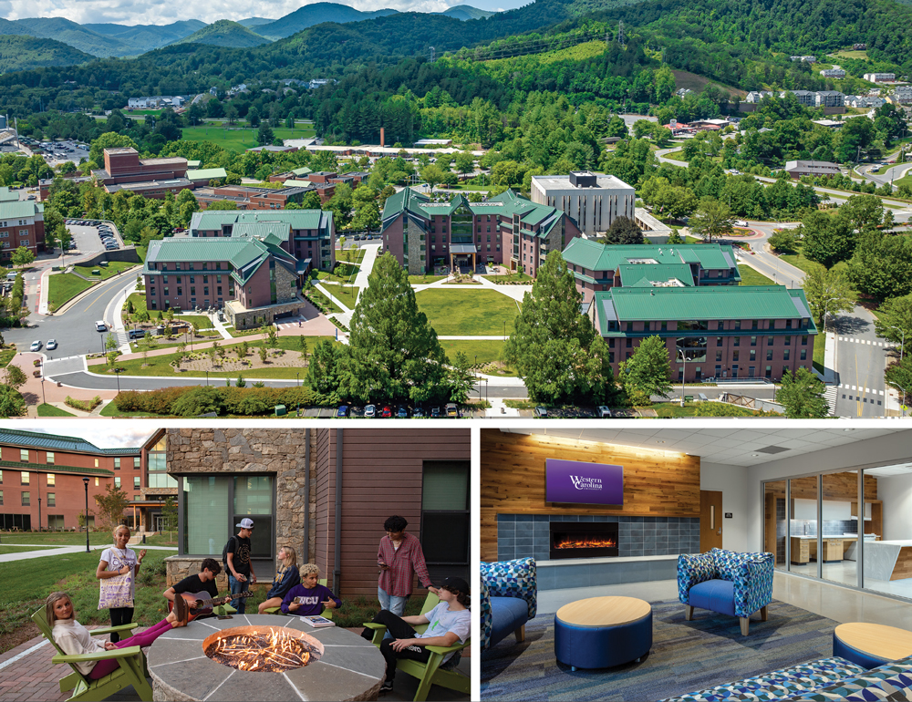 Western Carolina University added three freshmen residence halls featuring 932 beds, mountain lodging-style community rooms and outdoor spaces with fire pits and designated hammock areas. WCU named them Water Rock, Black Rock and Shining Rock, a nod to its mountain stewardship role since its 1889 inception. Each name represents a peak in the nearby Smokies, Plott Balsams and Blue Ridge mountains.
