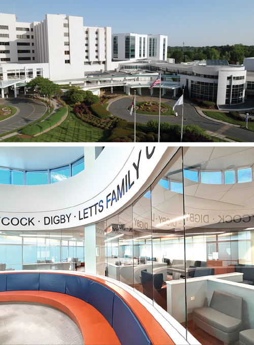 FirstHealth of the Carolinas, a not-for-profit serving 15 central N.C. counties, opened a cancer center at Moore Regional Hospital guided by the principle that cancer is survivable. The center brings outpatient cancer care under one roof, an improvement over having patients travel to separate buildings for treatments. The center houses palliative care services, research and clinical trials and support services for patients. Features include a fourth-floor wellness center with a yoga room and exercise equipment to help patients build stamina while undergoing radiation and chemotherapy. A garden gives patients an outdoor space to heal, connect and relax.