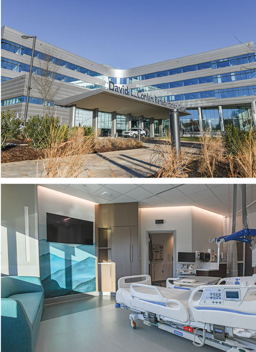 The five-story rehabilitation replaces a structure constructed in 1950. It features 72 patient rooms, private treatment spaces,
