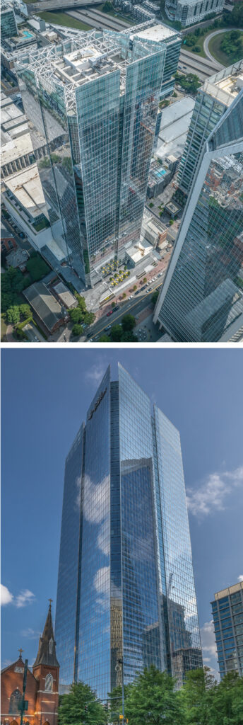 Portman purchased 1.8 acres next to the Queen Cityโs light rail line for $12.7 million in 2018.ย It replaced a single-story office space with a 16-story building that has about 28,000 square feet of retail space, 285,000 square feet of office space, and six floors of parking. Its darker steel and exposed concrete is a nod to the South Endโs industrial roots. Foundry Commercial reported 52% of the office space had been leased by late September.