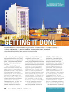 Economic development and small business growth have fueled a renais-sance in Cumberland County and Fayetteville over the past 20 years. Despite the arrival of the COVID-19 pandemic in March, Van Geons says 2020 was the county’s best year for economic development. And this year is shaping up to be better. “As of August, we have already had more projects come here than we did in all of [2020],” he says.