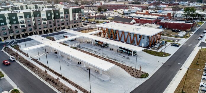 The G.K. Butterfield Transportation Center acts as a transportation hub for the city as downtown Greenville becomes a hive of entrepreneurial activity driven by dynamic startups. Photo courtesy of Uptown Greenville.