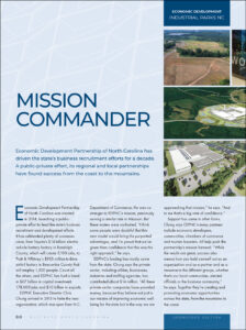 Support has come in other forms. Chung says EDPNC’s many partners include economic developers, communities, chambers of commerce and tourism boosters. All help push the partnership’s mission forward. “While the results are great, success also means how you hold yourself out as an organization and as a partner and as a resource to the different groups, whether that’s our local communities, elected officials or the business community,” he says. Together they’re creating and promoting economic opportunities across the state, from the mountains to the coast.