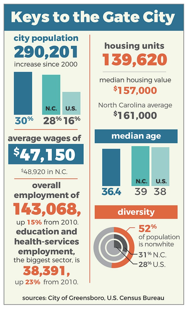 The story of Greensboro has parallels to the story of its main thoroughfare, Gate City Boulevard, which runs 6.5 miles from west of Four Seasons Town Centre mall through neighborhoods just south of downtown then out to Interstate 85. The mall’s opening in 1975 and the nearby Greensboro Convention Center made that chunk of road one of the state’s hottest real-estate zones, creating a magnet for shoppers, diners and visitors from across North Carolina.