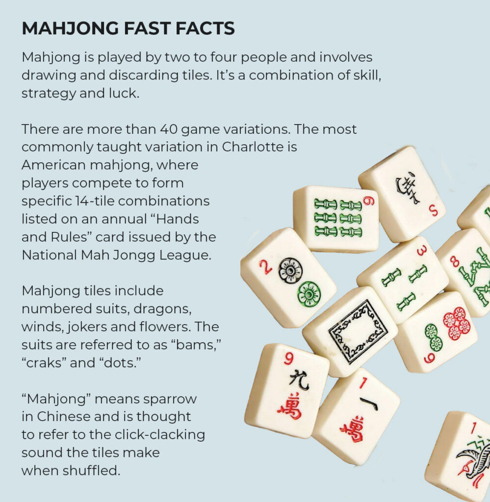 Jill Graham was among the first in Charlotte to offer formal mahjong lessons. She taught herself the game in early 2021. When people learned she could play the game, they asked for lessons. By early 2022, her classes with spots for 16 people had wait lists of 50 or more. The game has gained popularity ever since.