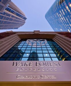 A previous owner defaulted in 2023 on a $37.3 million commercial loan tied to the building, the Charlotte Business Journal previously reported. Wells Fargo Trust Co. filed a civil suit in North Carolina Business Court in November 2023, asking that a receiver be assigned to the property, then called Wake Forest University Charlotte Center