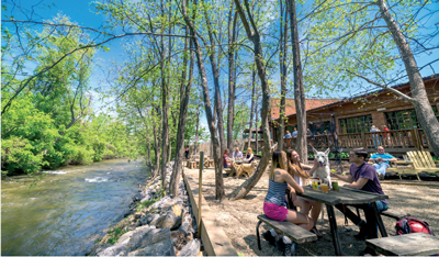 These days, Frog Level is a treasured nook of Waynesville. On a brick wall at the corner of Depot and Commerce streets, a mural features a cartoonish frog and the words “Welcome To Historic Frog Level.” Waynesville’s first craft brewery, Frog Level Brewing, opened in 2011, inviting customers to sit out back to watch Richland Creek ripple over the rocks. From spring through fall, bands perform live music on the deck.